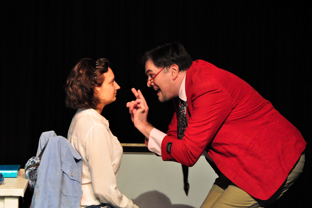 Ein packender „Krimi", vor allem aber eine großartige Leistung des Schauspielers und der beiden Schauspielerinnen unter der hervorragenden Regie von Sandra Malli. Thomas Vollmann als Professor. der sich vom erst freundlichen, fast schüchternen Lehrer zum gewalttätigen, lüsternen Monster wandelt, Lena Truppe als seine Schülerin und sein Opfer, das verbale und körperlich tätliche Angriffe tapfer über sich ergehen lässt, sowie Renate Weiss als Marie, das Dienstmädchen, das das Ende ahnt und es nicht verhindern kann, trugen von der ersten Minute an die Verantwortung für das Gelingen. Zu dicht der Text, zu dicht die Darstellung, als dass man hier laienhaft agieren hätte dürfen. Schwarz in schwarz schließlich Francis Kügerls Bühnenbild - auch hier wurde es ein wenig absurd.