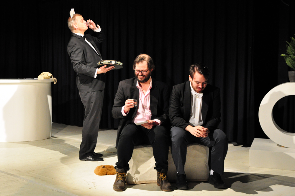 So „schick" wie aus dem Altkleidersack schlittert Gerd Wilfing als Schulze ins Nobelhotel. Hat die Publikumslacher auf seiner Seite und das Hauspersonal im Genick. Für die herrlich hinterfotzige ,,Direktorin" Astrid Maier-Ferra und ihren blasierten „Portier" Charly Diwiak ist keine Schikane zu schäbig, um den Schandfleck aus der Luxusdomäne zu vergraulen. Dass der Schulze in Wahrheit ein Konzernherr, Christoph Kuglers Dr. Hagedorn statt vermeintlichen Millionärs ein armer Schlucker und Arlind Hagjija nur ein Kurzzeit-Aufsteiger ist, treibt den Spaß in Erich Kästners Rollensatire „Drei Männer im Schnee" (1934 als Roman erschienen) im Theaterzentrum Deutschlandsberg auf die Spitze.
