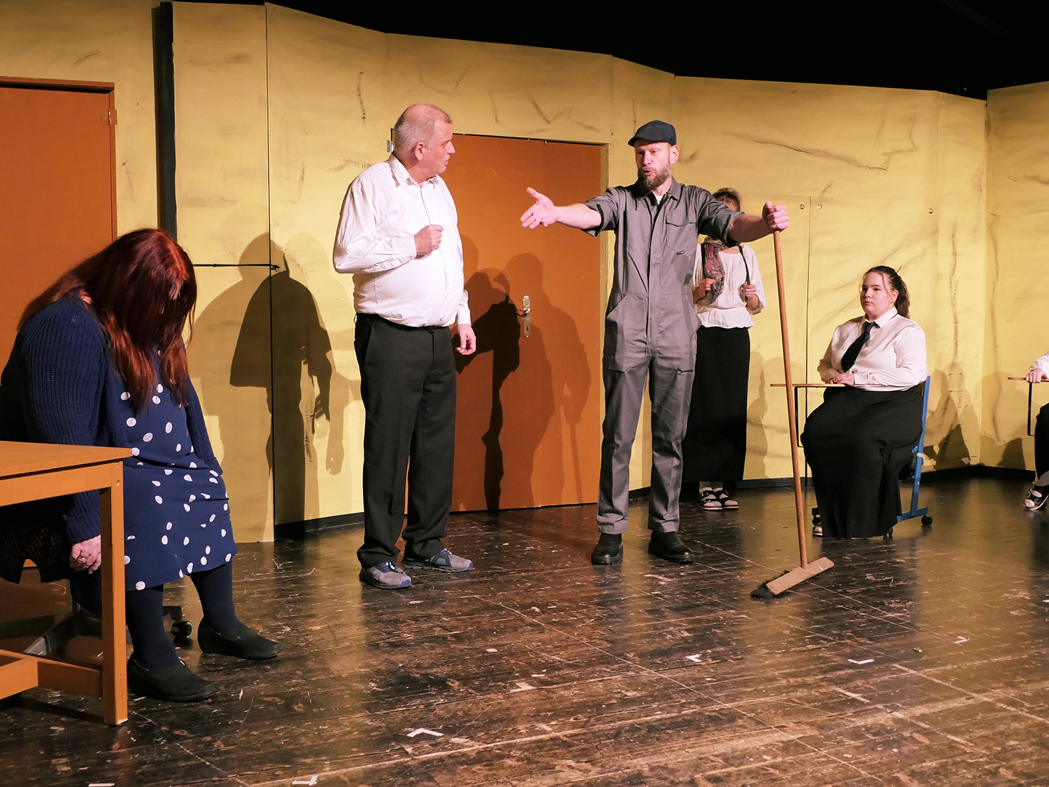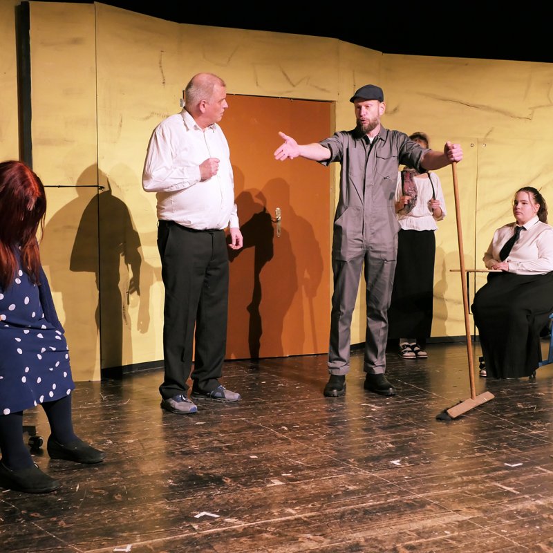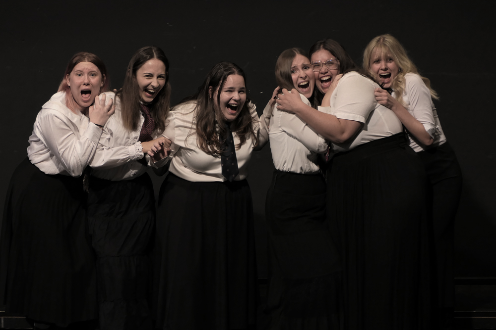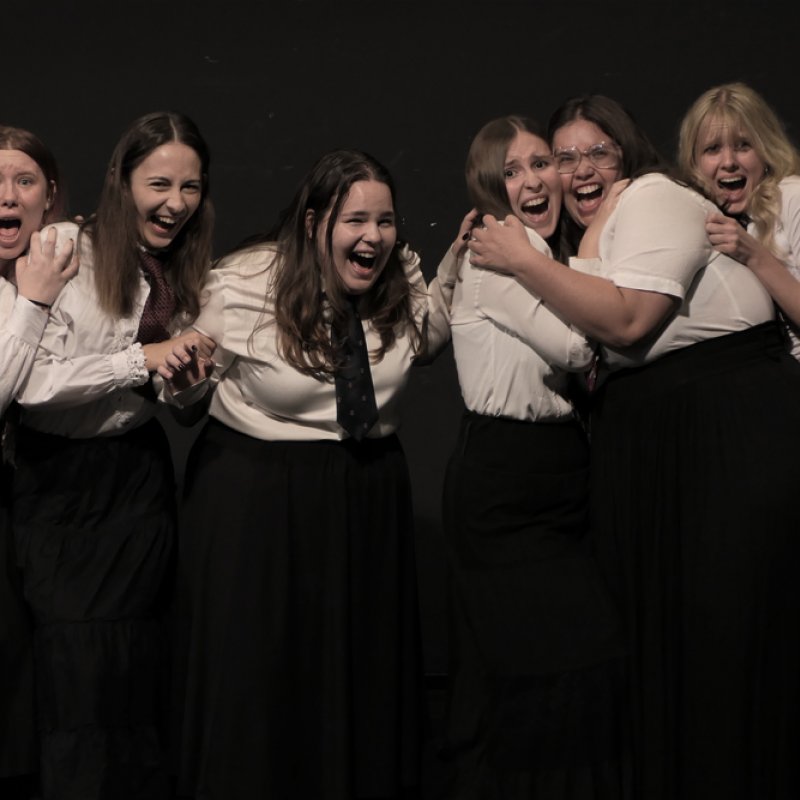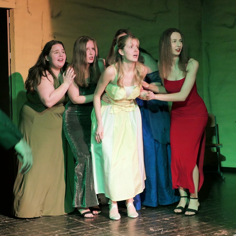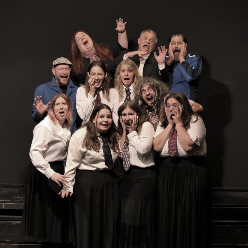 Hat das Reinbacher-Mädcheninternat Rachling nicht schon Existenzprobleme genug, passiert just vor dem Maturaball ein Mord. Die Lateinprofessorin mit dem süffisanten Namen Stefanie Ergosum rollt tot aus dem Lehrmittelkasten, was wegen Schulschließungsangst vor der Öffentlichkeit vertuscht werden soll in Christoph Theussls mysteriöser Krimikomödie „K.R.E.I.S.C.H.“, die er für das bestens präsente 11er-Team vom TZ Deutschlandsberg geschrieben, inszeniert und musikalisch umrahmt hat. Durch Schnee von der Außenwelt abgeschnitten, blühen im hausinternen, mit gruseligem Geschrei begleiteten Detektivspiel nun neben seltsamen Legenden die kuriosesten Verdächtigungen und Intrigen. Leider fanden Spaß und Spannung am Premierenabend während der Pause ein jähes Ende vor dem überraschenden Finale, da ein Akteur stürzte und sich eine Kopfverletzung zugezogen hat. Wir wünschen ihm baldige Besserung!