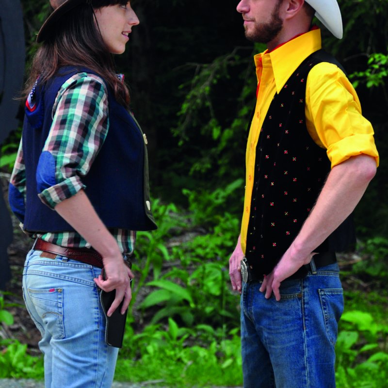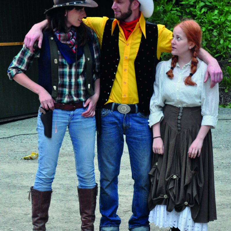 Er ist der Lucky Luke der wilden Weststeiermark - stilecht mit Gamsbart am Hut. Lucky Luis, der schneller schießt als sein Schatten, bekommt es z.B. mit den "Daltoner Buam" zu tun. Julia Zach setzt die Geschichte am Eislaufplatz Deutschlandsberg originell um. Von der vierköpfigen Brüderbande kriegt das Publikum nur Hüte und Haare zu Gesicht. Dazu zeigen Comic-Sprechblasen, dass es in ihrem Versteck gar nicht zimperlich zugeht, wenn der dümmliche Große vom cholerischen Kleinen eine verpasst bekommt. Verschwinden die realen Schatten, sorgt die Beleuchtung für Stimmung. So wird aus einer schrägen Feuerbeschwörung ein romantisches Lagerfeuer, mit dem der Cowboy herrlich überfordert ist. Witz dominiert, etwa wenn ein Heuballen zu einsamer Wildwestmusik seine Bahnen zieht. (...) Übrig bleiben ein toll unterhaltenes Publikum und der präsente Schatten des Lucky Luis.