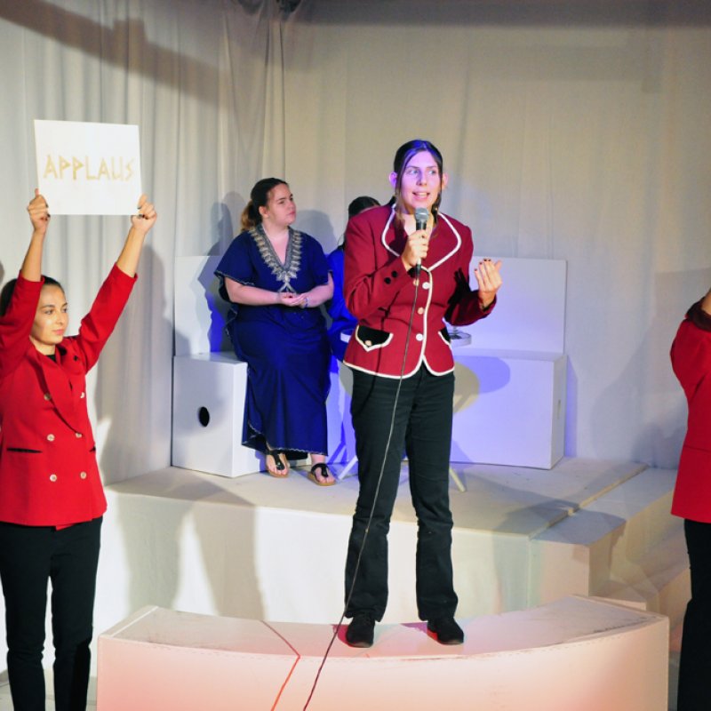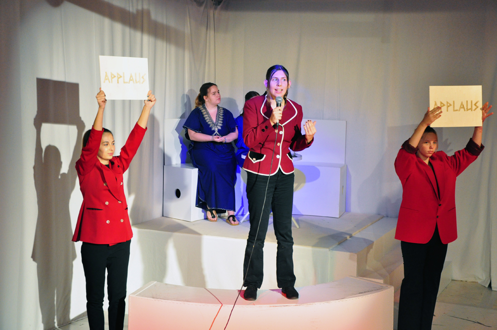 Man kennt sie wahrscheinlich aus der klassischen griechischen Literatur von Euripides und darf überrascht sein, wie „jung“ das Stück inszeniert wurde. Paul J. Diwiak hat nicht nur den Text selbst geschrieben, wodurch er auch für Jugendliche nachvollziehbar wurde, sondern auch in den Monologen auf Ovids Original-Texte zurückgegriffen. Letztere eine starke Herausforderung für Lena Pöltl, die vor allem in einer hinreißenden Szene ihr großes schauspielerisches Talent bewies. Großartig auch Laura-Marie Kumpitsch in der Männerrolle als Jason, wobei auch die weiteren Protagonistinnen Melina Toth, Johanna Aldrian, Marie Krauss, Magdalena Hauser, Florentina Degiampietro, Adina Strahlhofer, Nora Liechtenstein, Katharina Nebel und schließlich Fabian Wolf zum Gesamterfolg beitrugen.