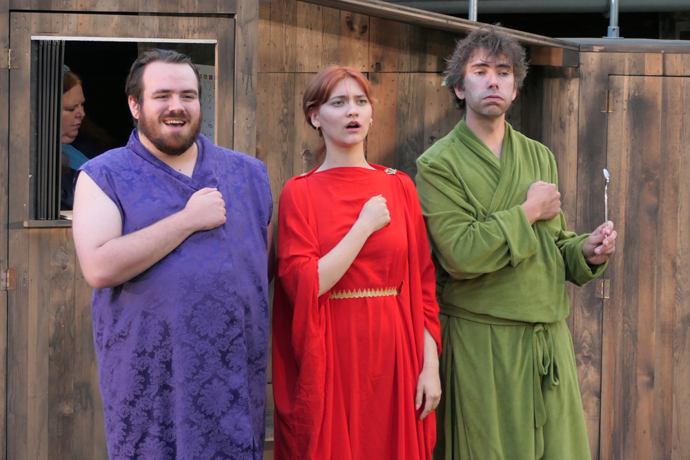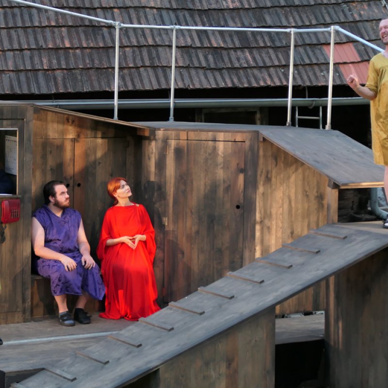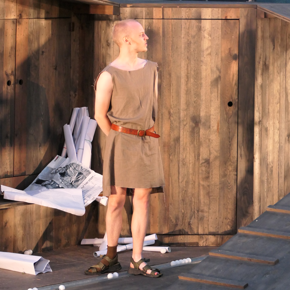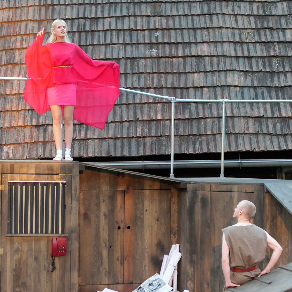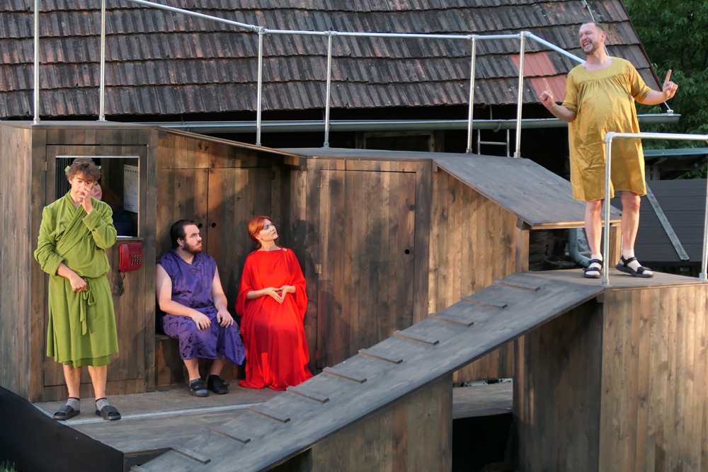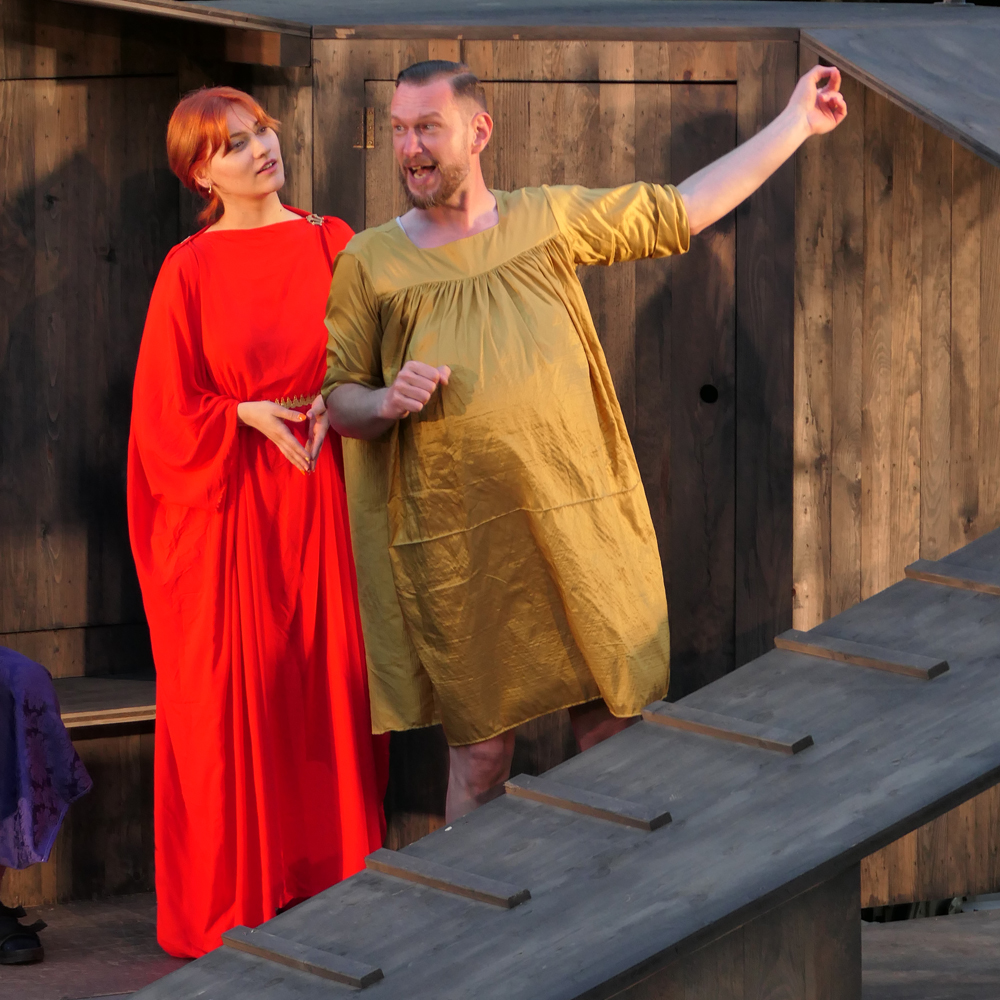 „Spielen wir noch einmal Komödie“, sind sich Romulus und Odoaker zum Schluss weltpolitisch einig bei den Landsberger Sommernachtsspielen unter Lukas Michelitsch.
