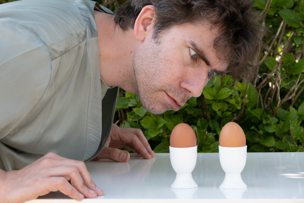 Der Müßiggänger liebt den Schlaf, Hühner, Eier. Thorsten Zerha mimt ihn bei der Premiere im Weingarten Kollar-Göbl raffiniert, mit zynischer Gelassenheit und Wahnwitz. Als „Romulus der Große“ nach Friedrich Dürrenmatt schert ihn Staatspolitik so wenig wie Roms Untergang. Sein Frühstücksei steht ihm näher als Kriegsgeschrei. Und Gerd Wilfing als feindlicher Fürst der Germanen entpuppt sich als Freund im Geiste.
