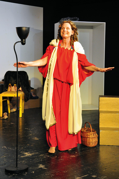 Eine Künstlergarderobe mit matten Spiegeln, Perücken und Kleiderständern. Vier Schauspielerinnen bereiten sich hier auf eine Theaterprobe vor und plaudern über die Probleme mit Männern. Was hätte wohl Goethes Langzeitgeliebte und spätere Gattin Christiane zu dem Beziehungskrach gesagt? Und schon kippt eine der Akteurinnen in die Klassik, hinein in die Figur der Christiane. Kaum ist sie verstummt, wird die nächste Schauspielerin zu Fontanes Effi Briest. Danach folgen RAF-Terroristin Gudrun Ensslin und die (fiktive) Hetäre Megara, die mittels Liebesspiel für Frieden sorgt. Starke Monologe, lose aneinandergereiht.