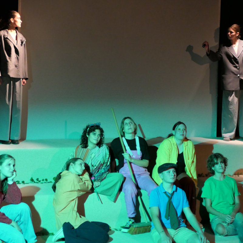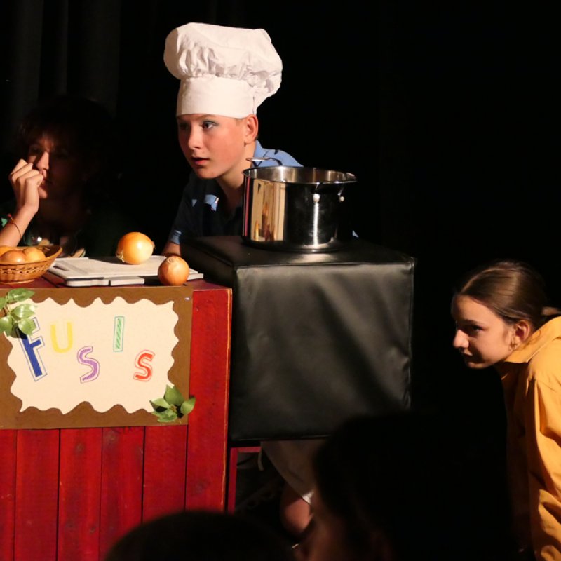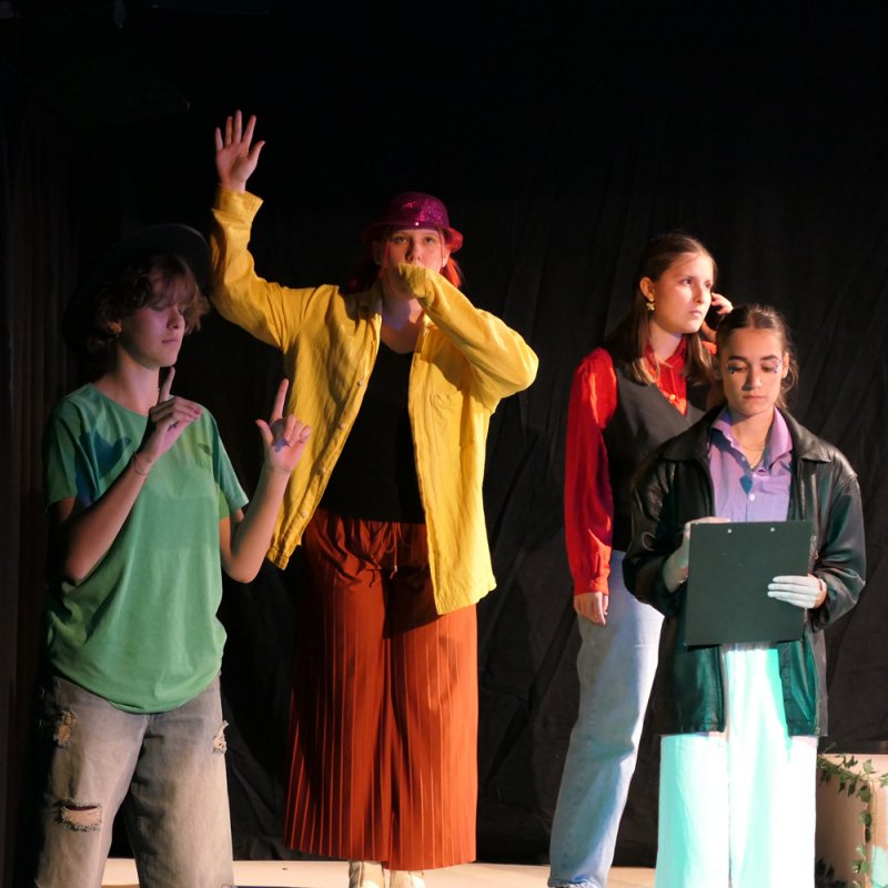 Ein Stück über Momo und ihre Freunde. Eine Geschichte vom Zeit sparen, Zeit rauben und Zeit schenken.